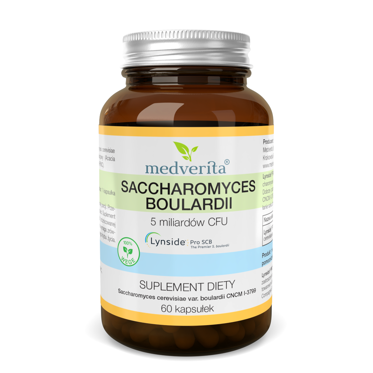 Każda kapsułka dostarcza 250 mg Lynside® PRO SCB, w tym 5 miliardów CFU Saccharomyces boulardii.